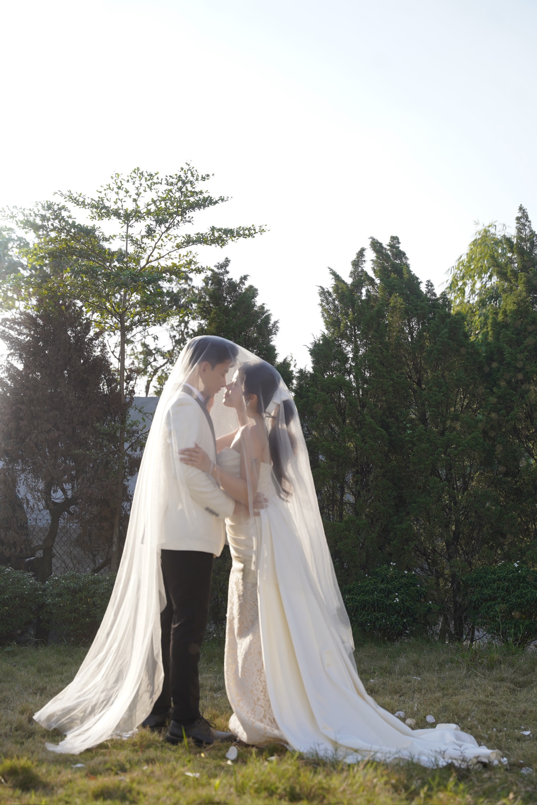 Dưới nắng hồng, áo nàng bay nhẹ, Tay anh nắm — lời thề dịu dàng, Hoa tươi chúc, bè bạn gần bên, Một đời bình yên bắt đầu hôm nay.